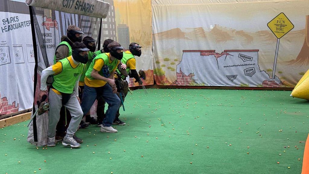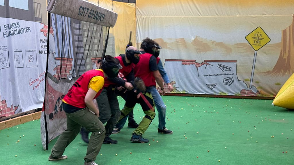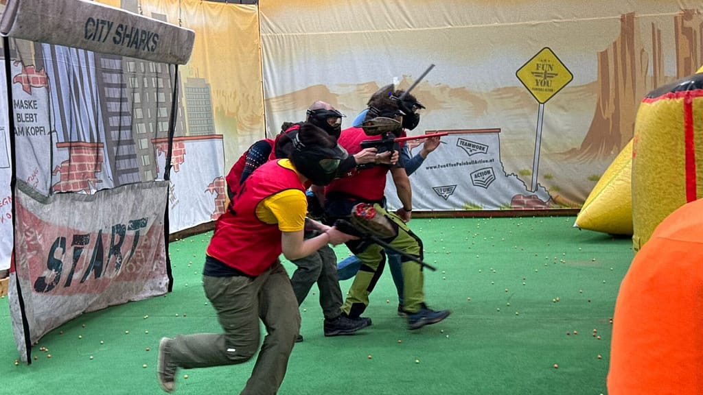 Unsere Weihnachtsfeier begann in unserem Aufenthaltsraum mit einer leckeren Brezel, einem wunderschönen Weihnachtsbaum und natürlich haben wir einmal kurz auf das zurückliegende Jahr angestoßen. Danach ging’s dann zum Paintball spielen. Es hat uns viel Spaß gemacht. Im Gasthaus Reblaus in Bregenz haben wir dann lecker gegessen. Es gab natürlich außer leckeres Essen auch sehr leckere Getränke;). Deshalb fehlen von diesem Teil der Weihnachtsfeier leider dann auch die Fotos irgendwie hat keiner mehr gewußt, wer eigentlich die Fotos machen wollte;). Also könnt Ihr euch ja vorstellen, wir hatten echt viel Spaß. Vom Paintball haben wir auch noch ein paar Bilder gefunden, die wollen wir euch und uns nicht vorenthalten :).